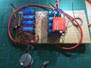 In order to get a higher Ah two sets of batteries are arranged in parallel. Each battery is rated at 7.2Ah, so conservatively, this arrangement will give 14Ah. I also decided to go for a more robust battery monitoring system by using two DALY BMS arranged as a 4s 2p. In this arrangement, each BMS is monitoring a single cell.